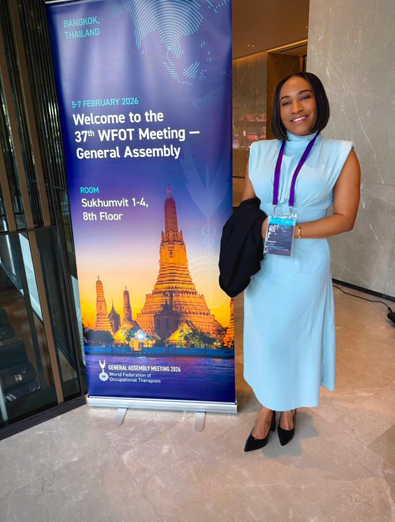 COG VI is proud to recognize Dr. Kniquiah Hughes for representing the Caribbean at the World Federation of Occupational Therapists (WFOT) 37th General Assembly Meeting (GAM) in Bangkok, Thailand. Dr. Hughes attended in her role as President of the Association of Caribbean Occupational Therapists, joining a global network of over 100 occupational therapy delegates from across the world.